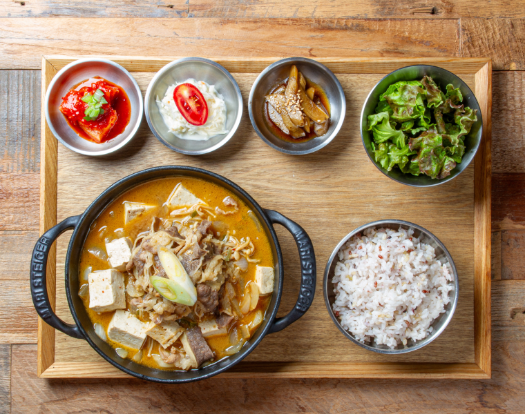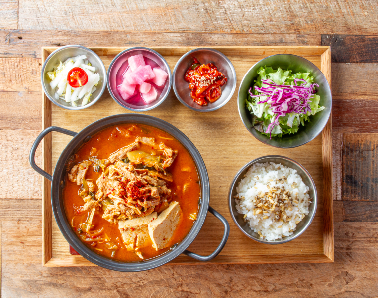 40년 김치 명인이 만든 ‘숙성김치'와 마블링이 가득한 고기를 듬뿍 넣어 진한 국물맛이 매력적인 김치찌개입니다.